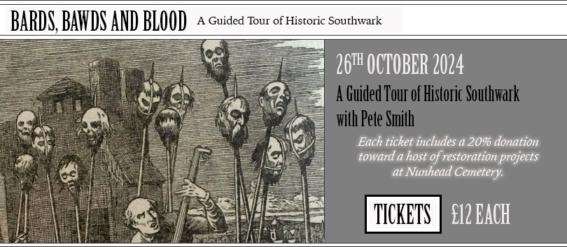 Not to mention booze, and a bridge once bristling with severed heads! Starting on the south side of London Bridge, between the City of London’s fire-breathing dragon and the monumental spike that reminds us of that display of traitors’ heads, this walk through what was once London’s wicked playground takes in a thousand years of dark deeds. Away from the restrictions of the City on the north bank of the Thames, this was the site of the theatres that Shakespeare and Marlowe wrote for, but it was also where Londoners came to visit the many whorehouses, to gamble and to witness animals tortured to death.