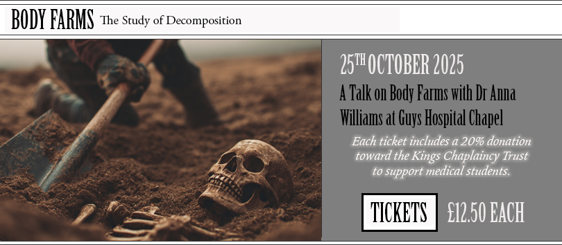 Much of our knowledge on this subject comes about as a result of Human Taphonomy Facilities (or Body Farms) which allow decaying corpses to be scientifically studied. The UK does not currently have such a resource (though there are eight in the US). Dr Williams will make the case for why we need such a facility in this country.