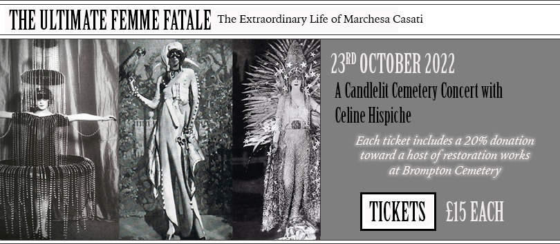 Luisa, Marchesa Casati Stampa di Soncino is one of the most exotic residents of Brompton Cemetery. A colourful heiress originally from Italy, she was a muse and a patroness to the arts during the early 20th century.
