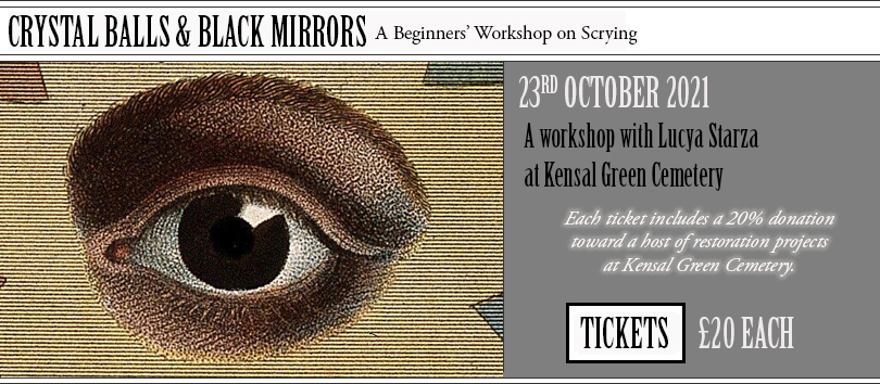 | CRYSTAL BALLS & BLACK MIRRORS An Introductory Workshop to Scrying with an Emphasis on Water Divination with Lucya Starza at the Dissenters' Chapel on Saturday the 23rd October at 3:30 pm Scrying is the practice of looking into crystal balls, mirrors, water, fire, clouds and other things to see visions, find messages and gain knowledge. It can be done to obtain guidance, for inspiration, to discover the answers to questions, to look at distant places or other realms, or for fortune-telling and prophecy. It is a form of divination that taps into our psychic senses and powers of intuition. Scrying has a long history. In ancient times the Cup of Jamshid was used by Persian kings for observing all of the seven layers of the universe. Nostradamus obtained his prophesies from staring into a bowl of water or a "magic mirror" to see the future while he was in a trance. The Mormon movement is founded on divinations obtained by Joseph Smith from miraculous reflections in seer stones. In this workshop Lucya Starza will discuss the methods that help you cultivate the ‘second sight.’ You will learn about working with a crystal ball, a black mirror, a candle flame and you will be given a practical detailed workshop on how to perform water scrying. Tickets £20 including a 20% donation toward a host of restoration projects at Kensal Green Cemetery. Please click here to purchase. Lucya Starza Lucya Starza is an eclectic witch living in London, England, in a rambling old house with her husband and cats. She writes A Bad Witch's Blog at www.badwitch.co.uk and is the author of Pagan Portals - Candle Magic. She edited the community book Every Day Magic - A Pagan Book of Days and also contributed to Naming the Goddess, Essays in Contemporary Paganism and Paganism 101. Image Credit - Anubis, the Egyptian Guardian of the Dead, preparing a mummy; located in the tomb of Sennedjem, Thebes, Egypt. Public Domain courtesy of Joanna Ebenstein. | /td>