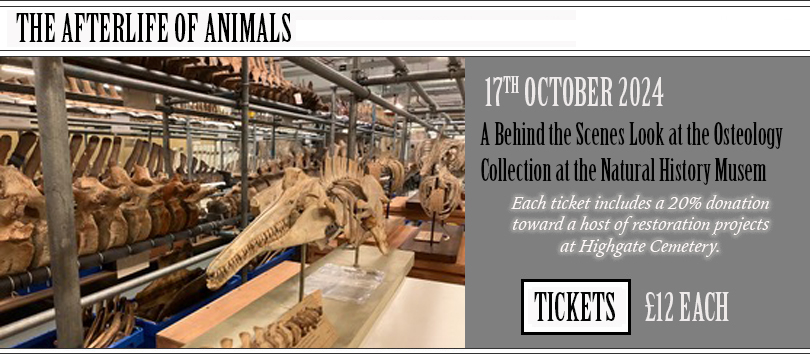 | THE AFTERLIFE OF ANIMALS Exploring the Museum's Hidden Collections with Richard Sabin At Highgate Cemetery Chapel On Thursday 17th October 2024 from 7:00 pm Join us for a unique opportunity to explore how the huge Natural History Museum archive of fluid-preserved, skeletal and taxidermy animals reveal secrets about the past that help us understand the future. Showing images of specimens from the research collections rarely seen in public, Richard Sabin, the Principal Curator of Mammals, will discuss the fascinating ways in which museum collections can provide crucial insights into evolutionary history and biological variation over time. Specifically Richard will offer a behind-the-scenes look at the museum's cetacean collection, which includes 6,000 specimens of whales, dolphins, and porpoises. These, due to their enormous size and irreplaceable nature, are housed in a vast, climate-controlled storeroom. As the custodian of this globally unique collection, Richard will share his expertise on how these specimens are preserved and studied, providing valuable insights into the natural history and evolutionary changes of these remarkable marine mammals.