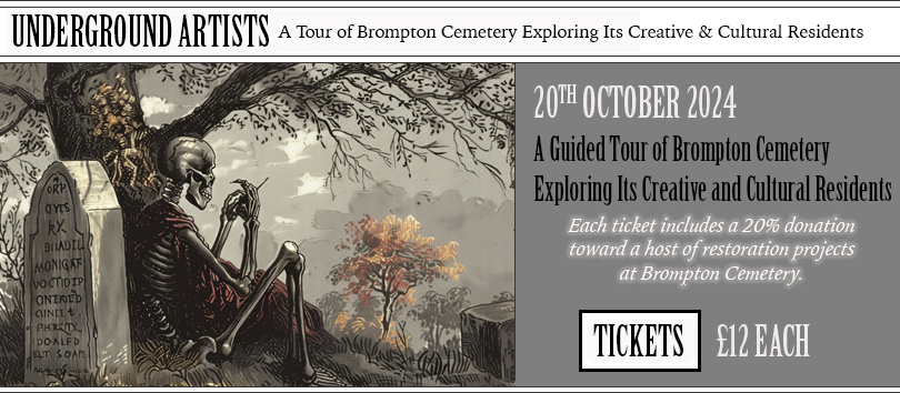 Tickets £12 including a 20% donation toward a host of restoration projects at Brompton Cemetery. Please click here to buy.