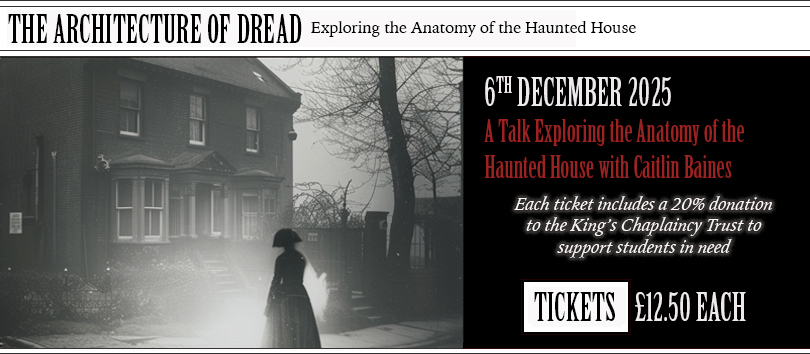 | THE ARCHITECTURE OF DREAD Exploring the Anatomy of the Haunted House At Guy's Hospital Chapel with Caitlin Blackwell Baines on Saturday 6th December 2025 at 1:30 pm What exactly makes a house feel haunted? Is it the chill that runs down your spine in a deserted hallway? A dark shape that lingers in the air like dust? Or is it something more tangible, something built into the very stones, shadows and silhouettes? Art historian and author Caitlin Blackwell Baines invites us on a spine-chilling illustrated journey through some of the world’s most infamous haunted houses from the windswept battlements of Medieval Scotland to the gaslit streets of Enlightenment-era London, from the creeping dread of Victorian suburbs to the oppressive humidity of pre-Civil War Louisiana. As an expert in Gothic art and architecture, Blackwell Caitlin is uniquely qualified to dissect the "eternally eerie." She will explore that specific, chilling set of ingredients that captures our collective imagination and defines what we all instinctively recognize as the architecture of dread. Tickets £12.50 including a Gothic Punch and 20% donation to the King's Chaplaincy Trust to support medical students. Please click here to purchase. Caitlin Blackwell Baines Caitlin Blackwell Baines (PhD, University of York) is an art historian and author specializing in Georgian and Gothic architecture. She has lived and breathed this subject, working as the former curator for Mount Stuart, a late Victorian Gothic Revival palace on the Western coast of Scotland. When she isn’t visiting unsettling houses, she hosts the popular history podcast, Haunted Homes. Copies of her book, How to Build a Haunted House: The History of a Cultural Obsession, will be available for purchase and signing at the event https://www.caitlinblackwellbaines.com/ ![]() |